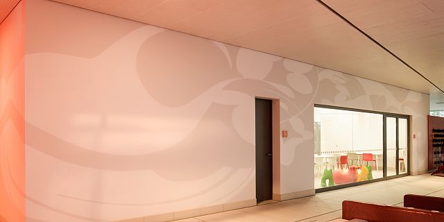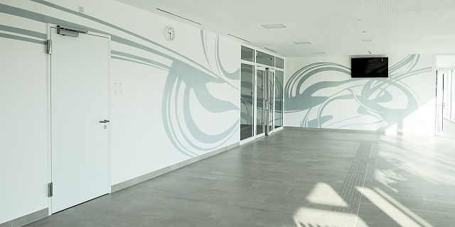 Foyer Sporthalle Badylon/Freilassing. Architektur: Löweneck+Schöfer. 2019