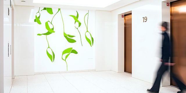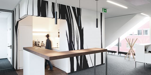 microsoft vienna headquarter. cafeteria. (walltattoo) architektur: innocad