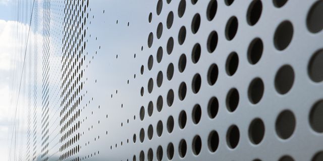 Domico. Design für Lochblechfassade Schulungshalle. Architektur: Burgstaller. 2019